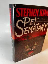 Doubleday, 1983. Hardcover. Good/Poor. Larger, sturdy book, quality black cloth, near-bright gilt lettering for facsimile signature at bottom front, gilt lettering fine on spine, red spine, ink owner's name at top inside front cover, 373 pages plus an Epilogue--pages lightly browned. (A code appears to be Y4 at seam at bottom right of Epilogue) DJ glossy with colorful illustration of snarling cat in foreground, a dark figure in a cemetery in background, red and black sky, spine in shades of blue, white back with King's books mentioned as his latest, "Christine." DJ badly torn for most of front bookfold edge but still in place, tiny tears to all edges except bottom back, bottom back edge has two very tiny nicks. DJ now beneath protective mylar. Poor DJ/Good book.