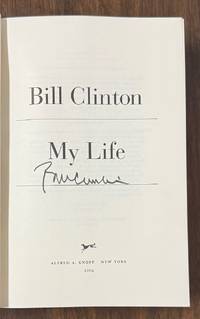 New York: Alfred A. Knopf, 2004. First Edition, First Printing. Cloth. Fine/fine. Signed first edition of My Life, the memoirs of President Bill Clinton.. Octavo, 957pp, xlii. Blue cloth, gilt title on spine, author's name blind stamped on cover. Stated "First Edition" on copyright page, with "failure of my life" error on page IV of Acknowledgments. Appears unread. In the publisher's first state dust jacket, retail price on front flap, fine condition. Signed by President Clinton on the title page with a full "Wm. J. Clinton" signature.
