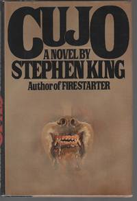 Beautifully signed by Stephen King to front panel of dust wrapper: "Stephen King, 9/22/86." Very attractive. Stated at copyright page: "First Published in 1981 by The Viking Press." First edition, eighth printing; number-line beginning w/8. Textured brown matte boards, silver SK, black cloth spine wrap, brown metallic and silver spine titles, moderate shelf wear. Pages near fine, no writing; slight fox inside covers. Bind fine, hinges intact. Original dust wrapper closely matching first state in design, moderate edge wear, rub, discoloration, crease at front flap; unclipped 15.95, protected in new clear acid-free sleeve. Classic jacket illustration of Cujo's frothing canines by Steven Stroud. King full-size photo at back by Jill Krementz. Scarce fairly sharp signed early printing in same wrapper. A chilling tale of terror in a quiet New England town and the horrible evil unleashed in the dead of Summer...'Cujo' is the story of a rabid Saint Bernard who terrorizes a woman and her son in the town of Castle Rock, Maine. Cujo, the two-hundred-pound Saint Bernard, is the beloved family pet of the Cambers. One day he pursues a rabbit into a bolt-hole, a cave inhabited by some very sick bats, whereupon the tragic nightmare ensues. Rare tangible. Printed in the United States of America. 329 pages. Insured post.