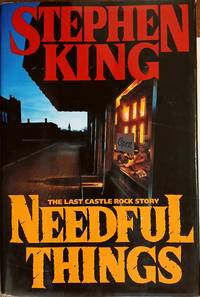 New York, New York, U.S.A. : Viking, 1991. 1st Edition 1st Printing. Hardcover. Mint/As New. 8vo - over 7¾ - 9¾" tall. With a demonic blend of malice and affection, Stephen King says goodbye to the town he put on the map -- Castle Rock, Maine . . . where Polly Chalmers runs You Sew and Sew and Sheriff Alan Pangborn is in charge of keeping the peace. It's a small town, and Stephen King fans might think they know its secrets pretty well; they've been here before. Leland Gaunt is a stranger -- and he calls his shop Needful Things. Eleven-year-old Brain Rusk is his first customer, and Brian finds just what he wants most in all the world; a '56 Sandy Koufax baseball card. By the end of the week, Mr. Gaunt's business is fairly booming, and why not? At Needful Things, there's something for everyone. And, of course, there is always a price. For Leland Gaunt, the pleasure of doing business lies chiefly in seeing how much people will pay for their most secret dreams and desires. And as Leland Gaunt always points out, at Needful Things, the prices are high indeed. Does that stop people from buying? Has it ever? For Alan and Polly, this one week in autumn will be an awful test -- a test of will, desire, and pain. Above all, it will be a test of their ability to grasp the true nature of their enemy. They may have a chance . . . But maybe not, because, as Mr. Gaunt knows, almost everything is for sale: love, hope, even the human soul. With the potent storytelling authority that millions of readers have come to prize, Stephen King delivers an Out Town with a vengeance, an inimitable farewell to a place his fiction has often and long called home. Mint, unread, first edition, first printing, in as new, mylar-protected dust jacket. {Not remainder-marked or price-clipped} L177